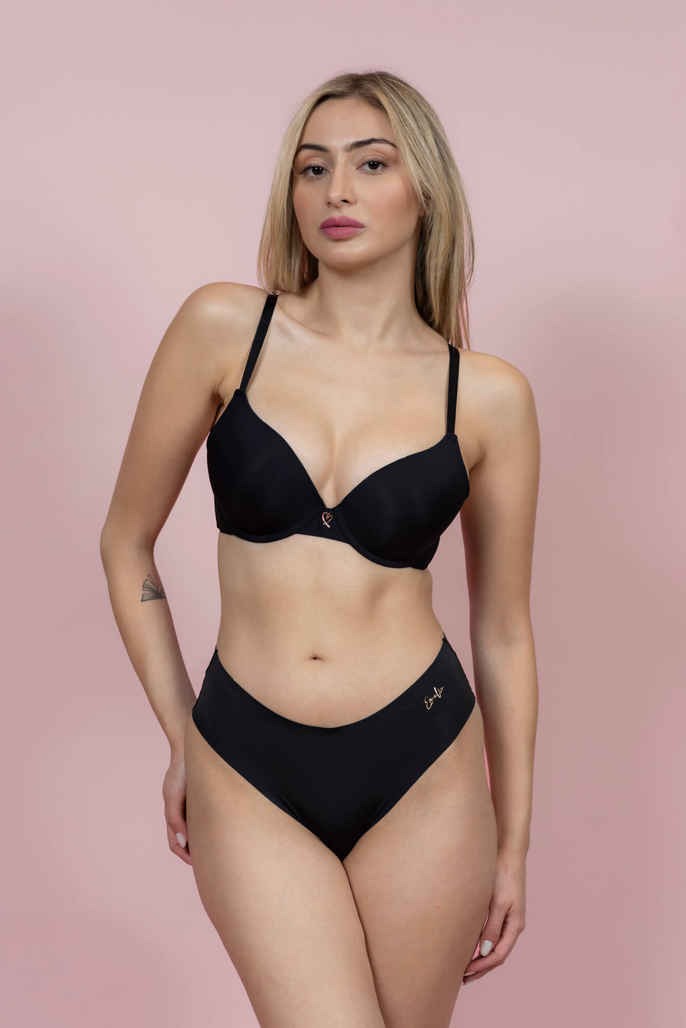 חזיית ריפוד קל בעיצוב קלאסי ומחמיא, המעניקה מראה מעוצב וטבעי. החזייה כוללת כתפיות דקות ומתכווננות להתאמה מרבית ולתמיכה מושלמת לאורך כל היום. הגימור חלק ואלגנטי, עם קישוט מתכתי בצורת לב קטן בקדמת החזייה שמוסיף טאצ' עדין וייחודי. הבד רך ונעים על הגוף, אידיאלי לנוחות מקסימלית ולשימוש יום-יומי. מתאימה לכל לוק ולכל בגד, זמינה במגוון צבעים רחב.