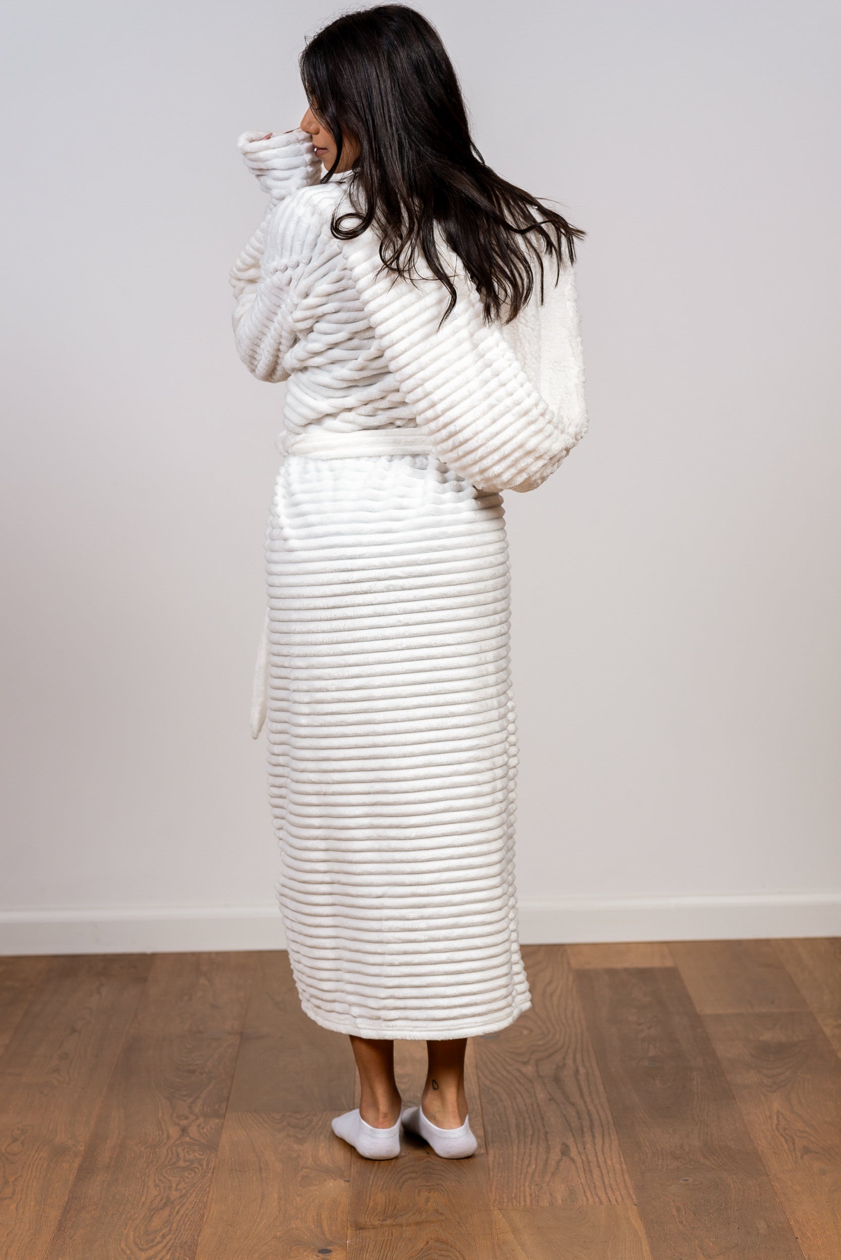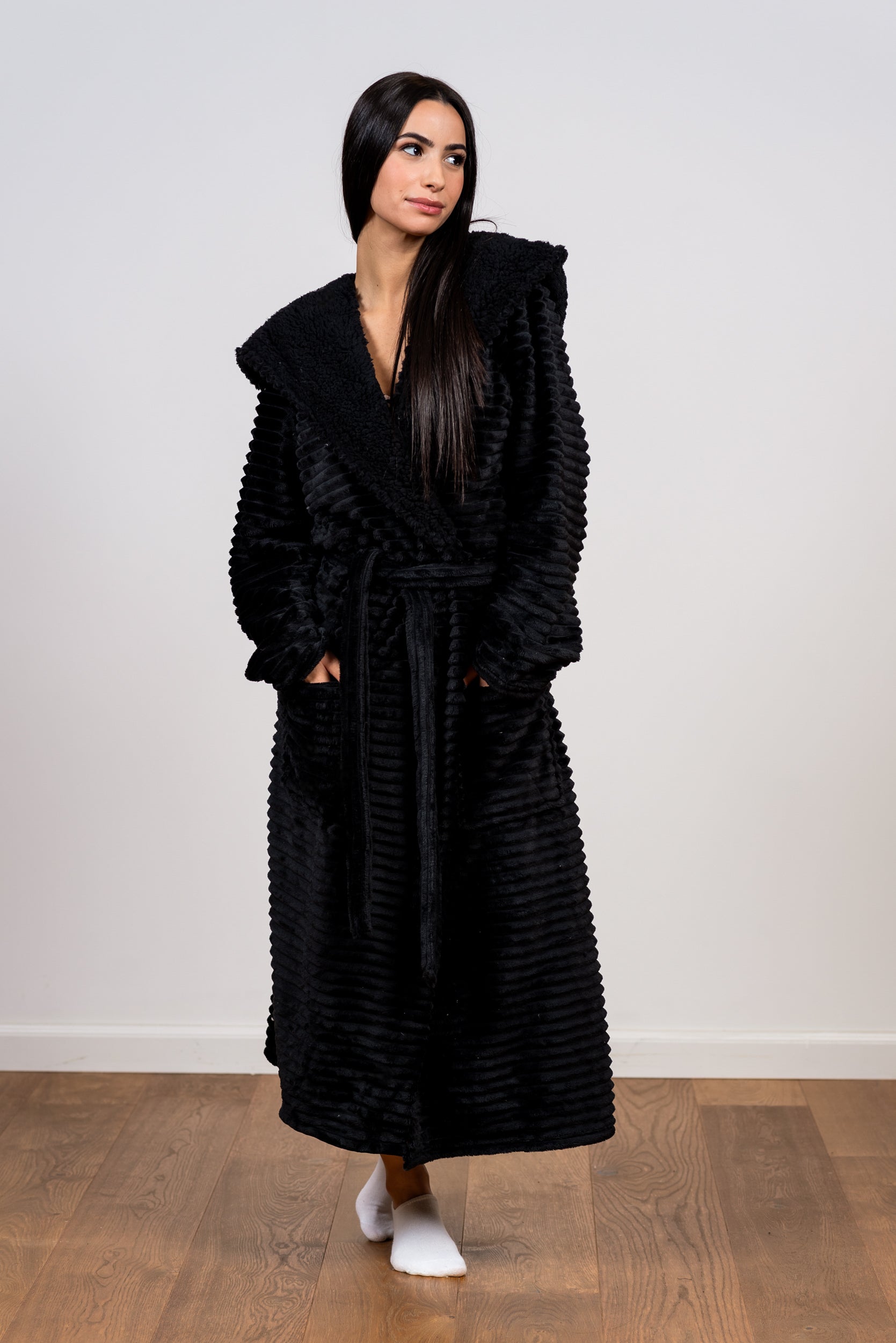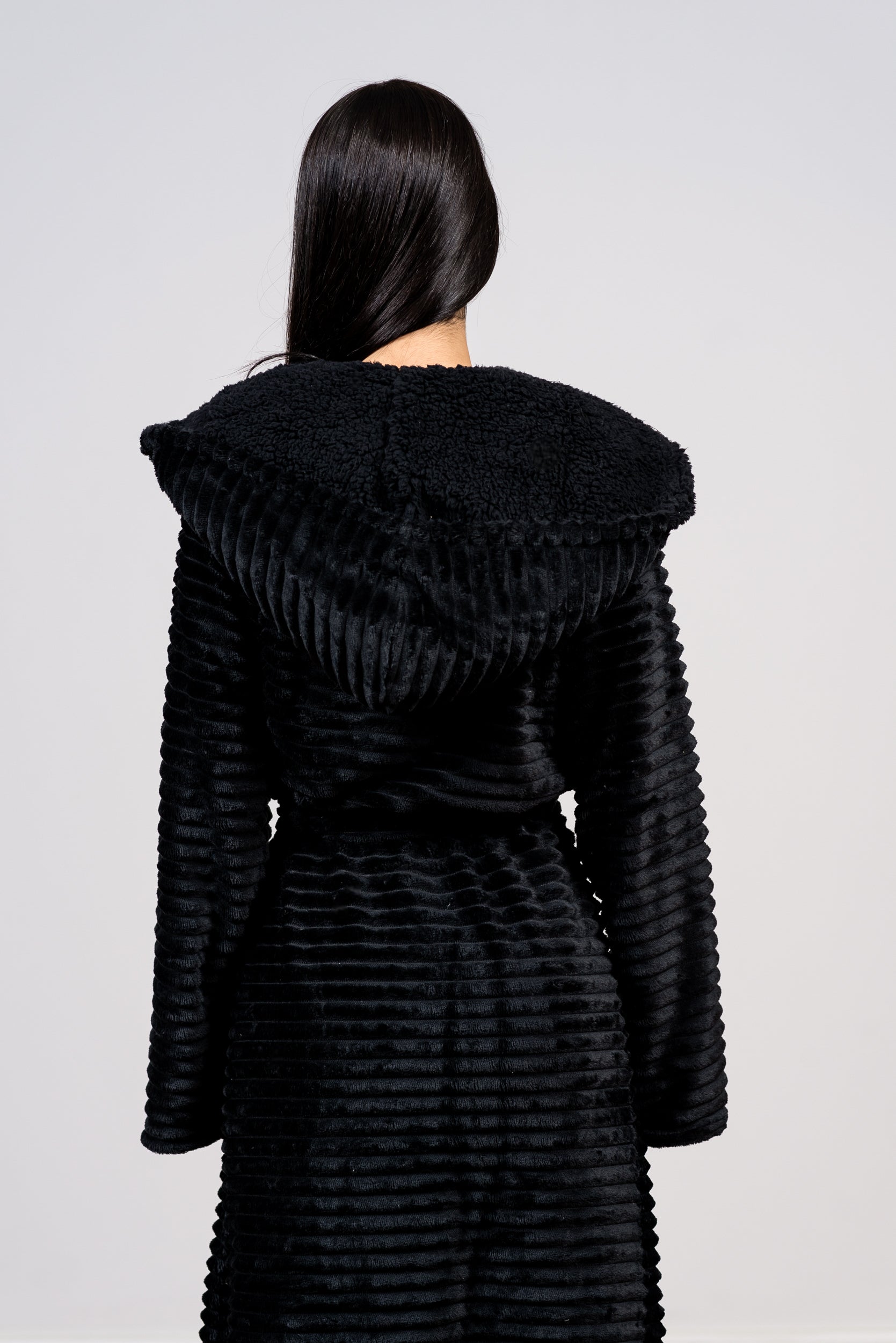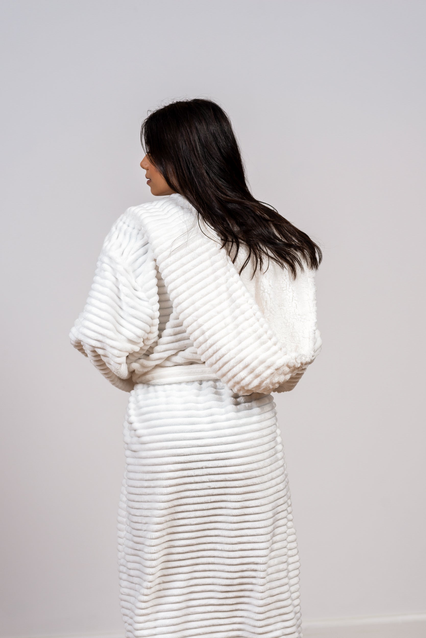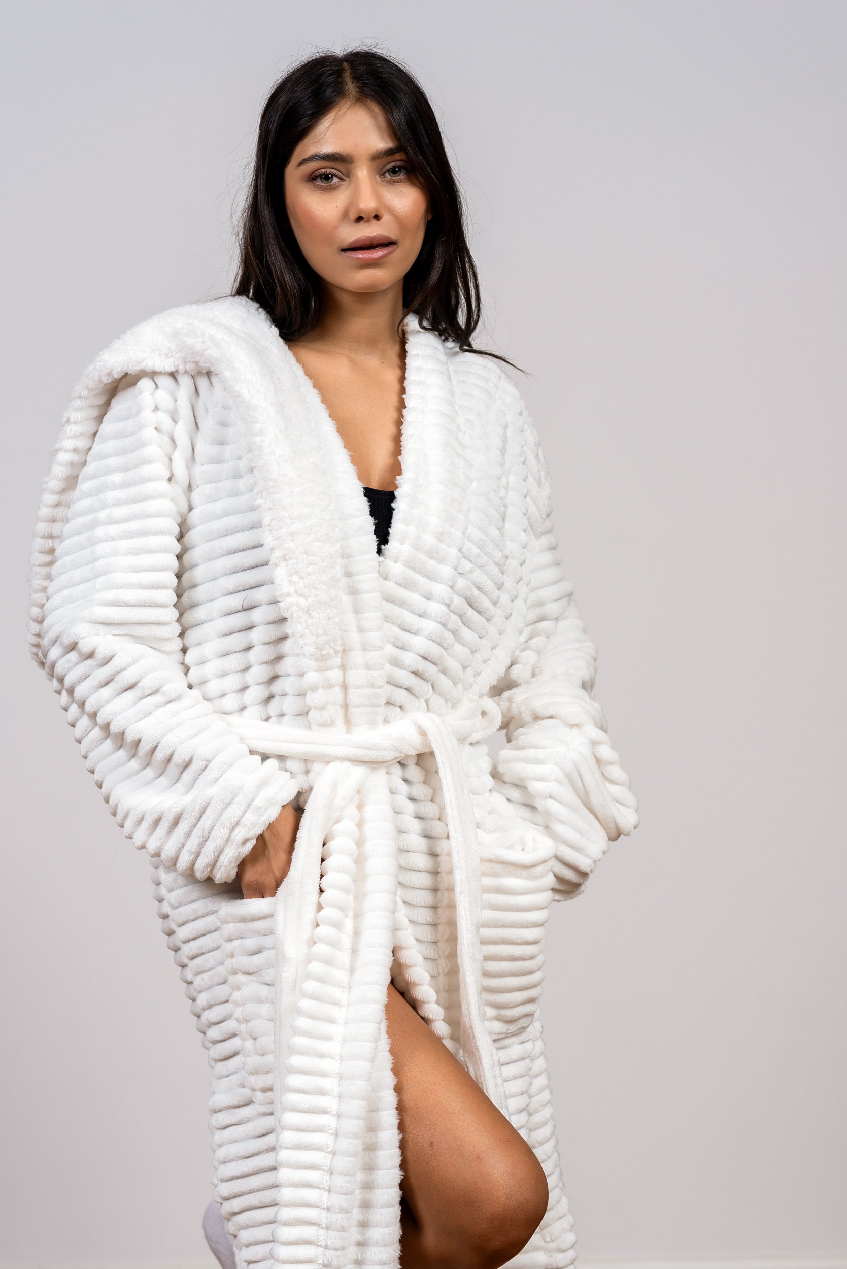 החלוק המושלם לימי החורף הקרים! חלוק הפליז הזה, חלוק ארוך אשר מעניק חמימות מיידית ורכות מלטפת. הטקסטורה המפוספסת הייחודית מוסיפה לו שיק מודרני, והוא כולל קפוצ'ון עוטף לשמירה על חום הראש והצוואר. עם כיסים גדולים ורצועת קשירה מתכווננת, זהו החיבוק החם והמפנק שתחכי לו בכל ערב.