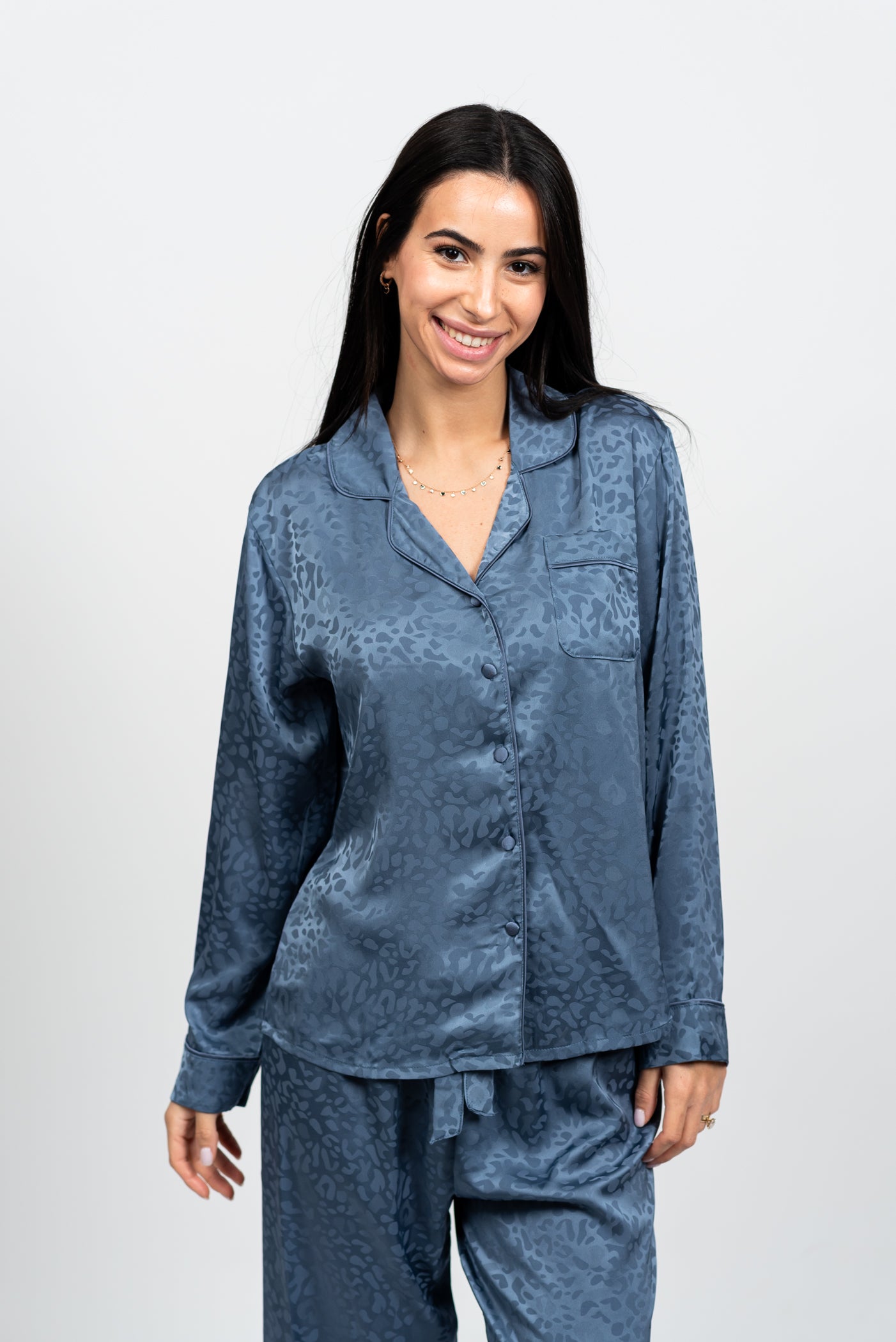מה שמייחד את הסט הזה הוא הדפס הג'קארד (טון-על-טון) המתוחכם – טקסטורת מנומר עדינה ואלגנטית שנארגה אל תוך הבד, ולא מודפסת עליו. הדבר מעניק לבד עומק, ברק עדין ושיק יוקרתי ובלתי מתאמץ