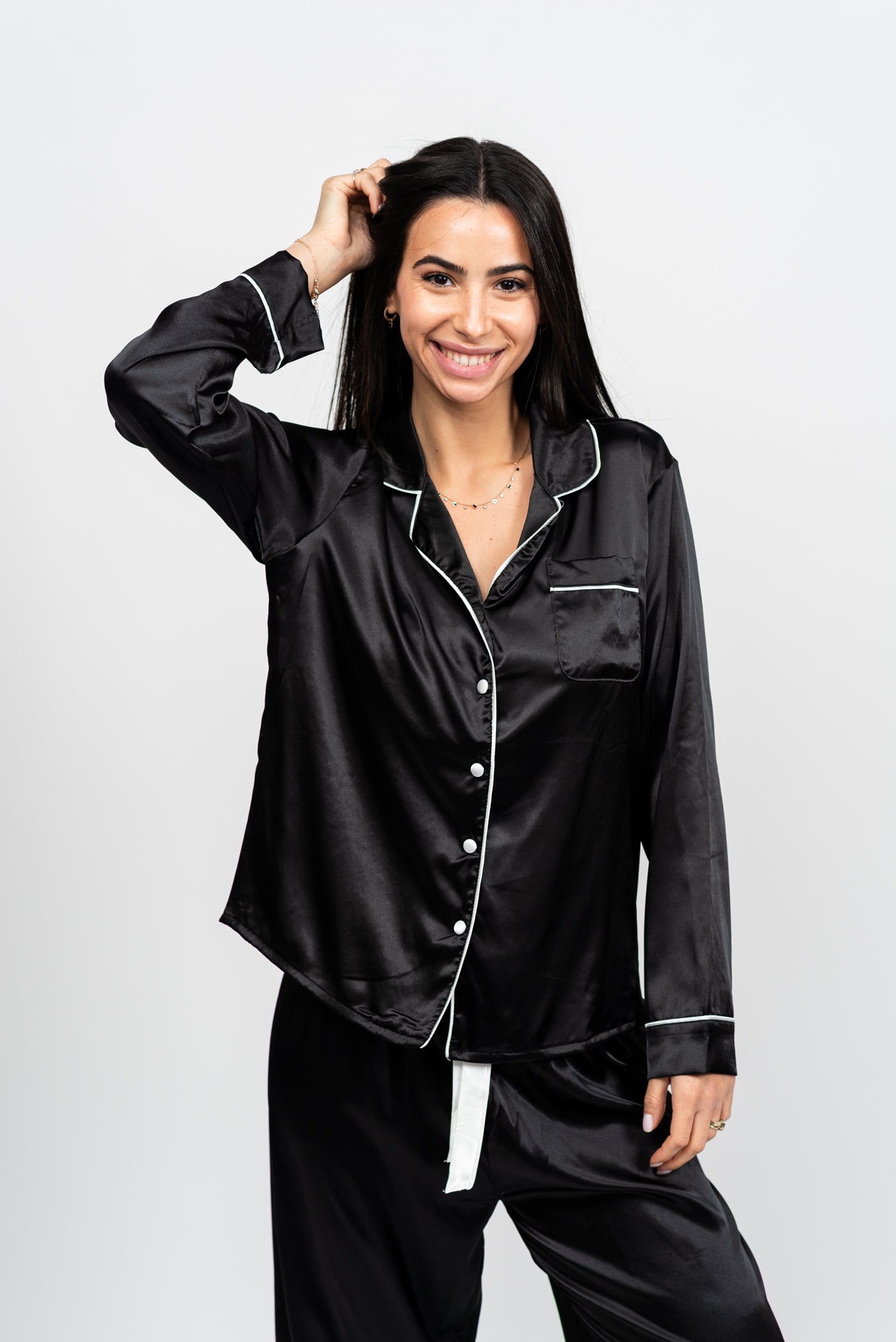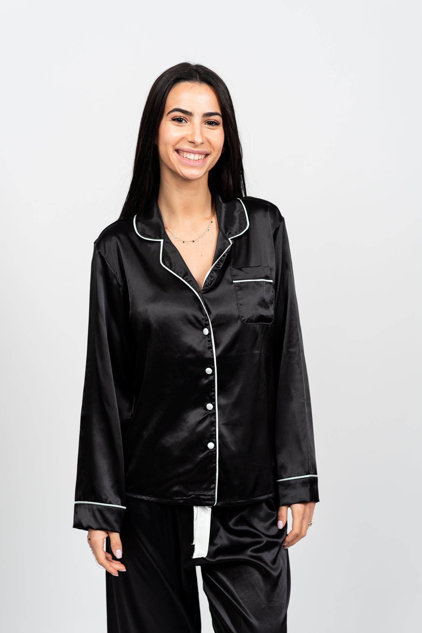 סט פיג'מת סאטן קלאסית