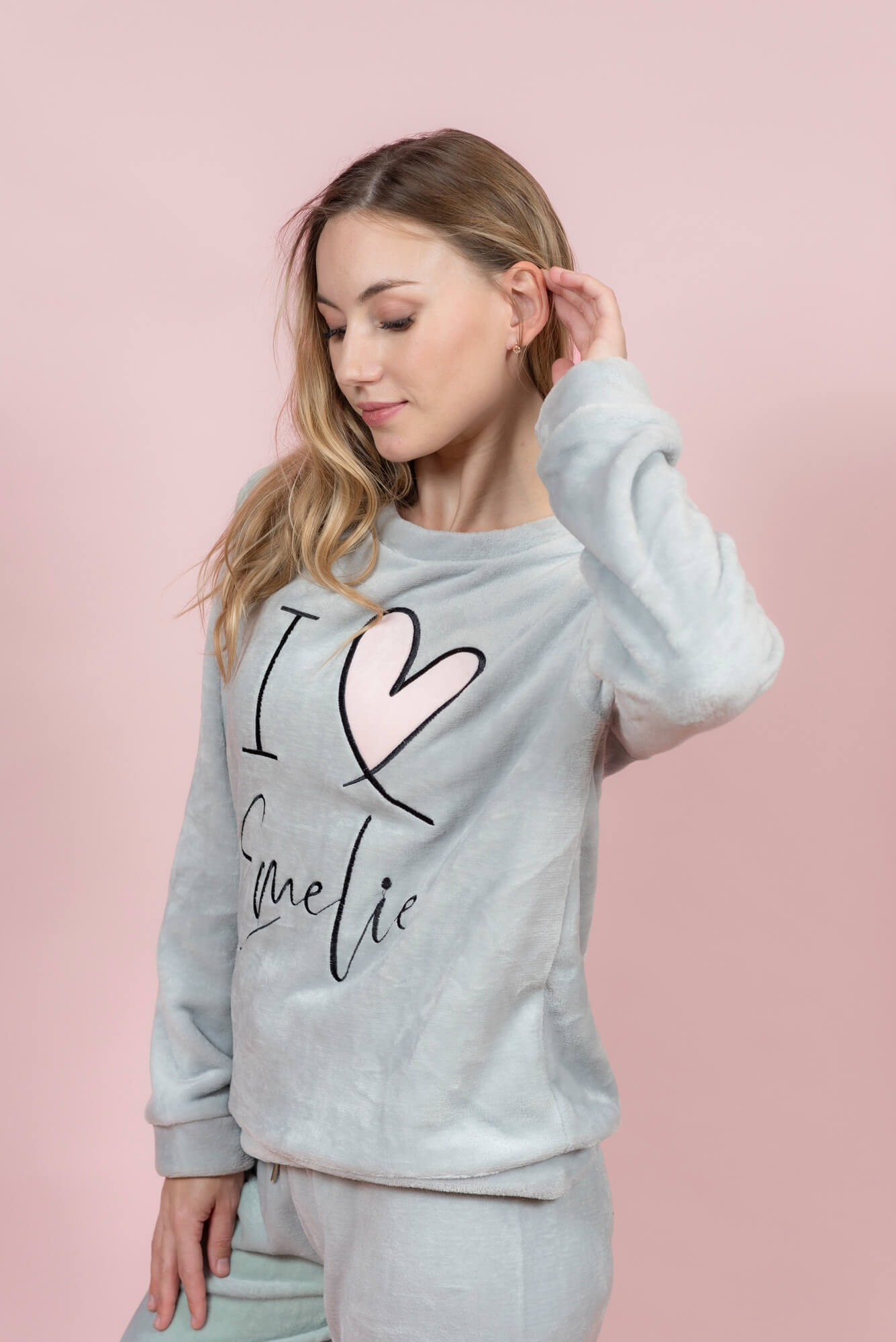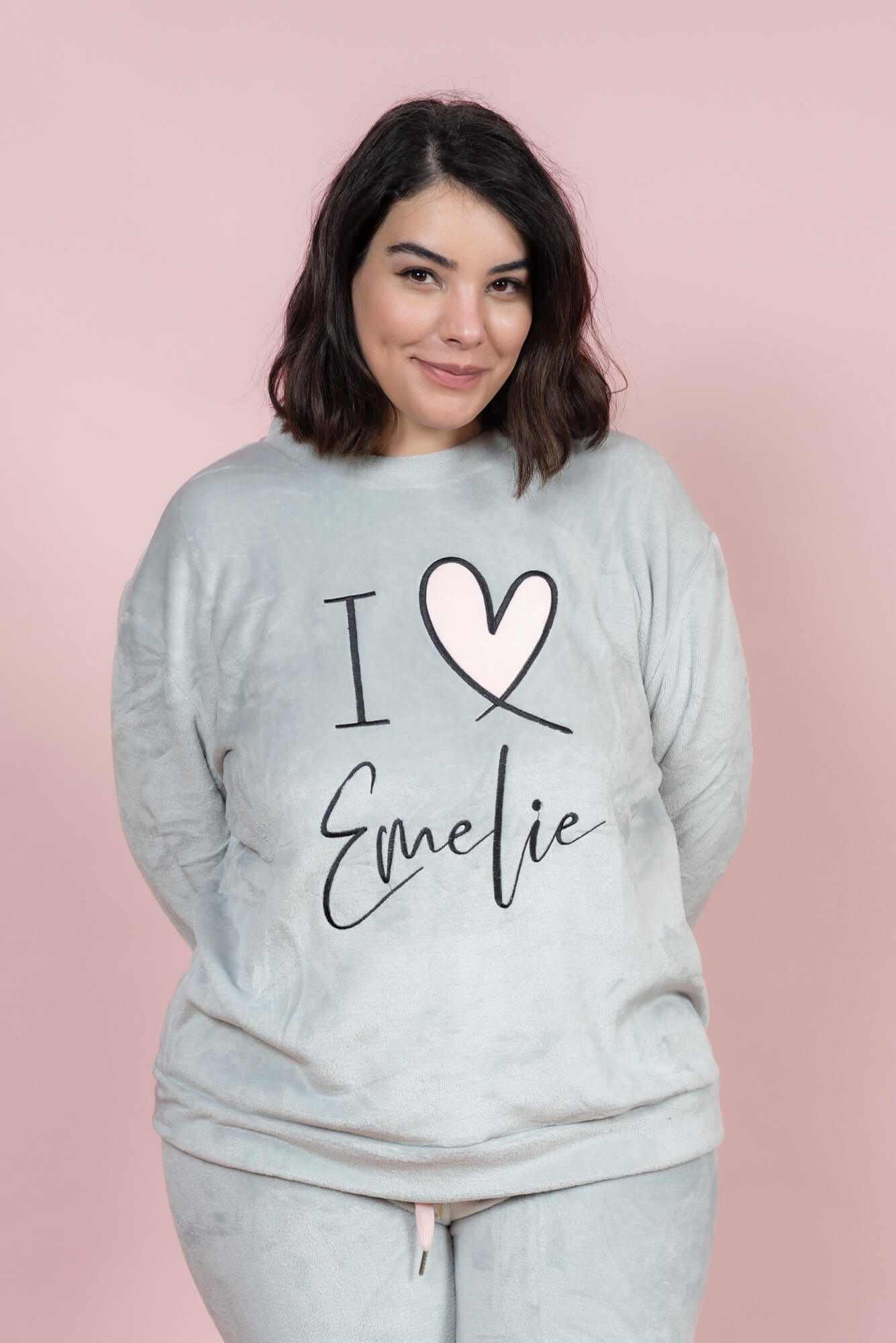 אהבה לנוחות ולעיצוב! סט פליז ייחודי עם הכיתוב "I Love Emelie" ולב עדין. זה הזמן להראות אהבה לעצמך עם פיג'מה שלא תרצי להוריד.