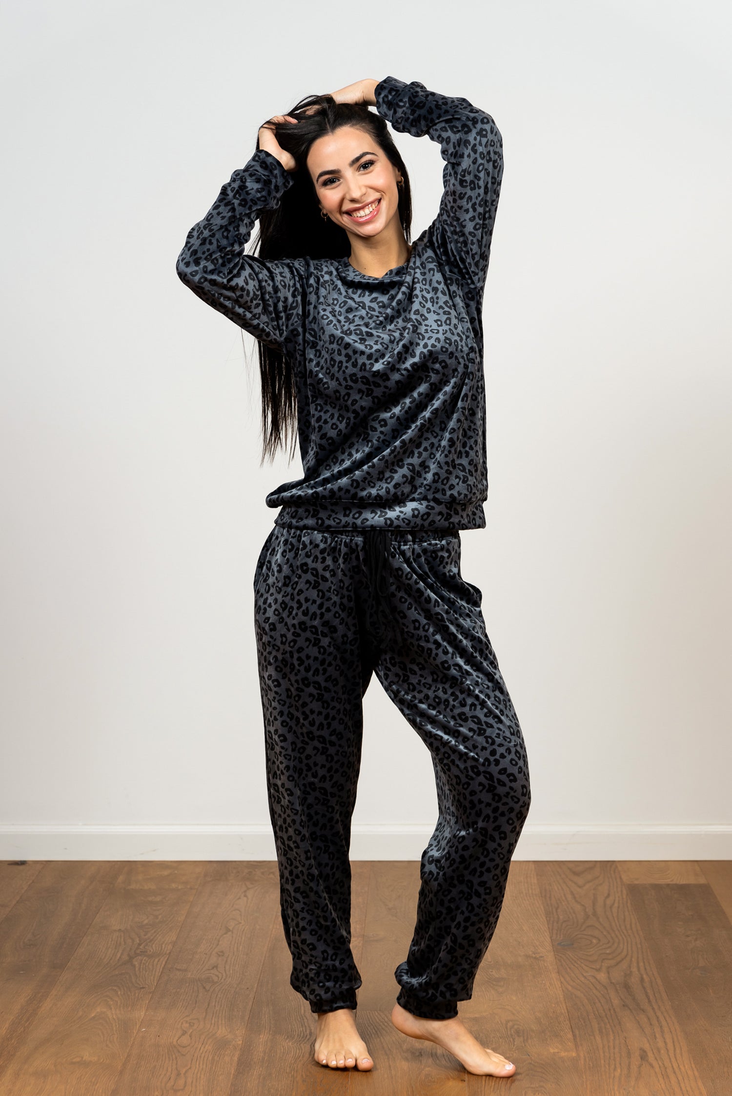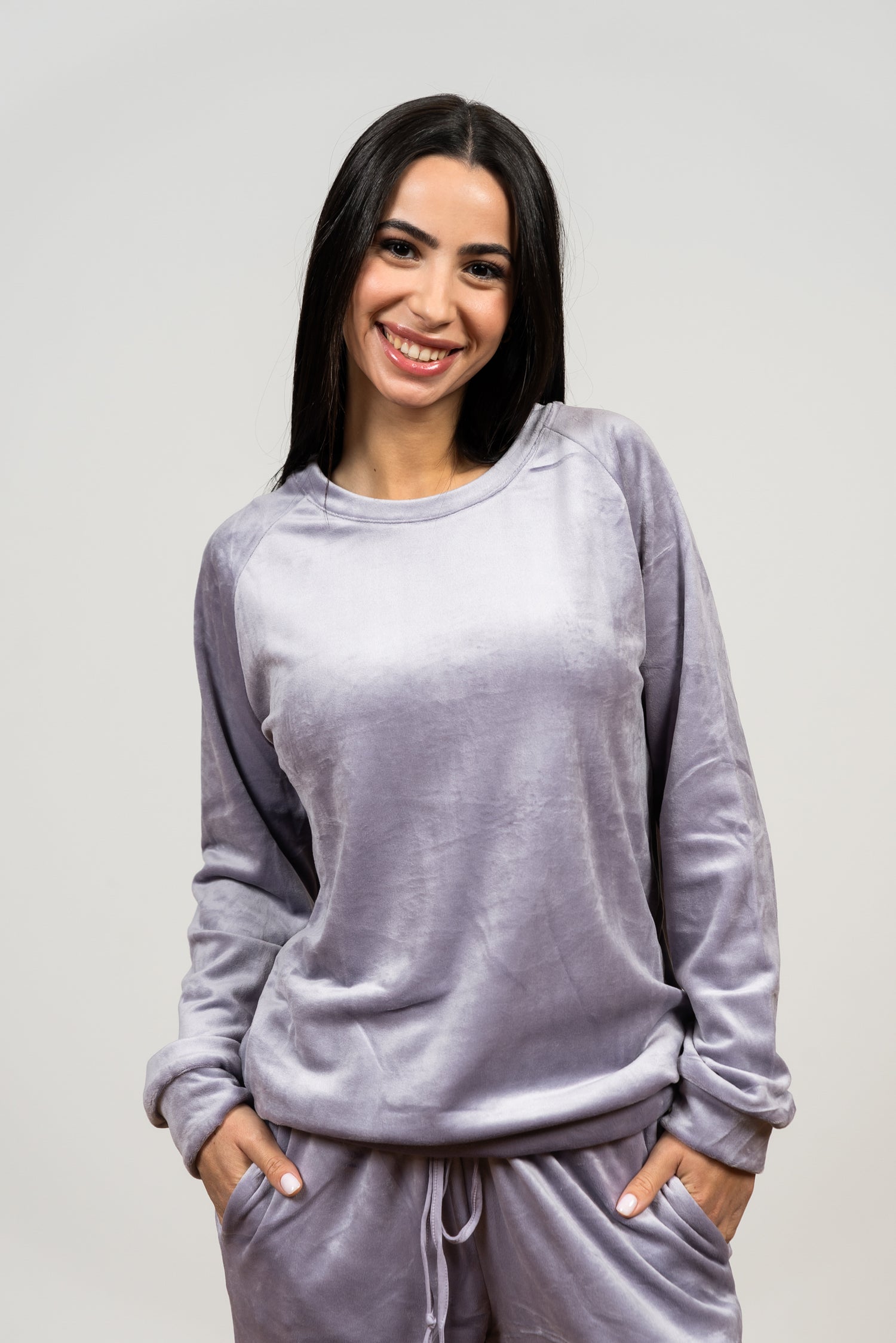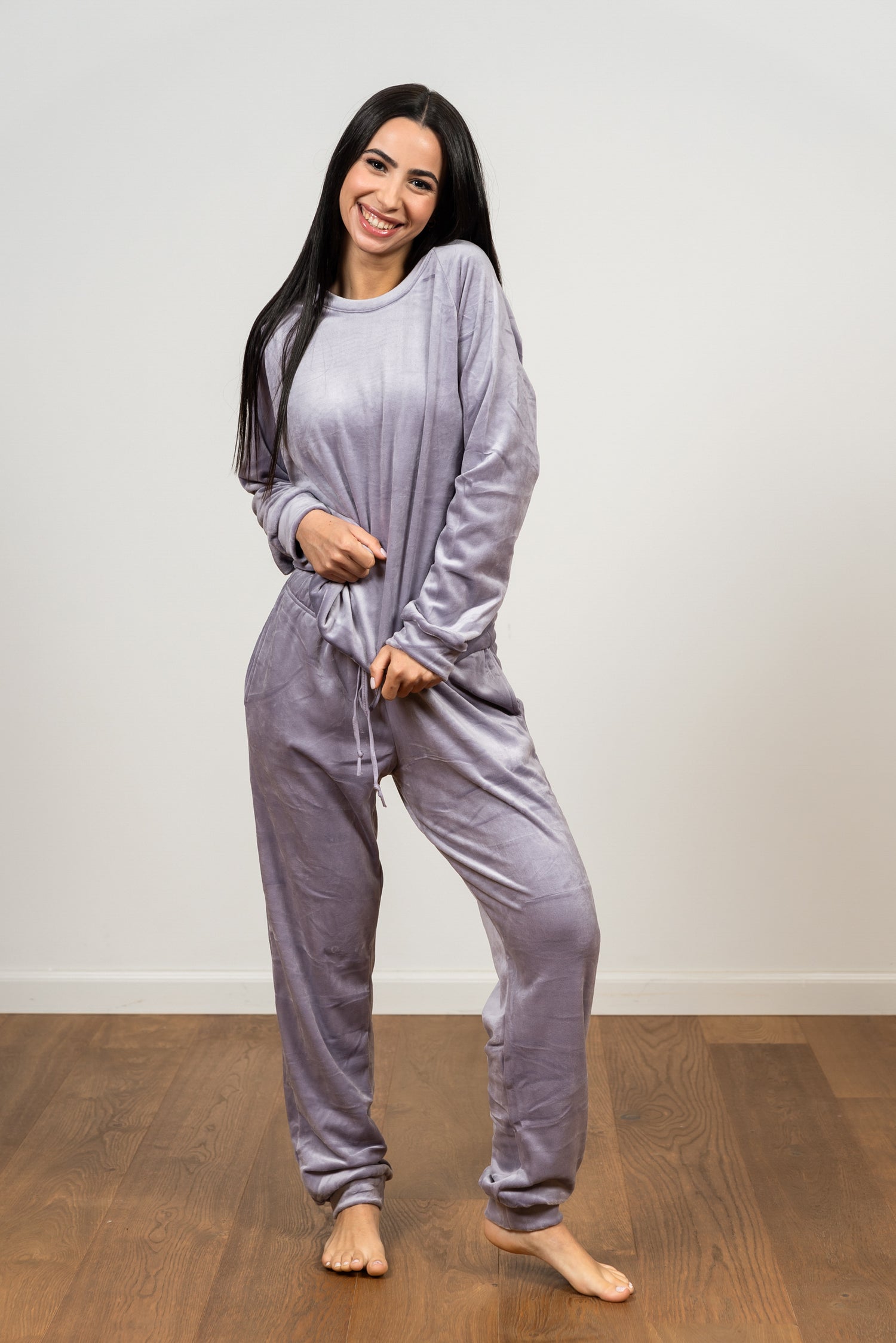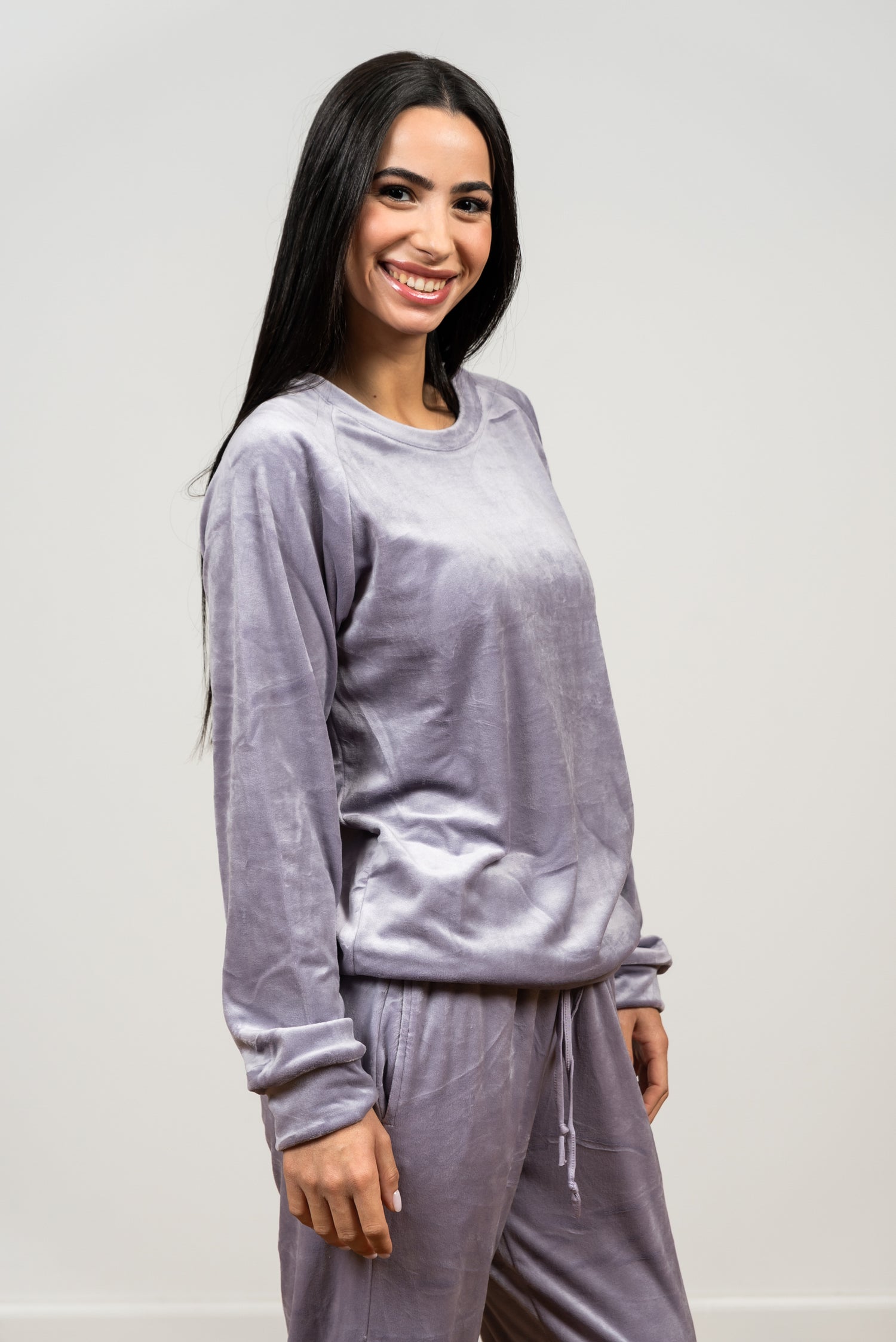 התפנקי בחוויה קטיפתית ונוחה! הסט מעוצב מבד קטיפה עשיר ורך למגע, ומעניק לכן חמימות וסטייל בלתי מתפשרים לערבים בבית. גזרה נינוחה, כולל סריג עגול ומכנס ג'וגר תואם עם שרוך מותן להתאמה אישית. מושלם ללילות השינה, לרגעים של מנוחה או ללבוש ביתי שיקי.