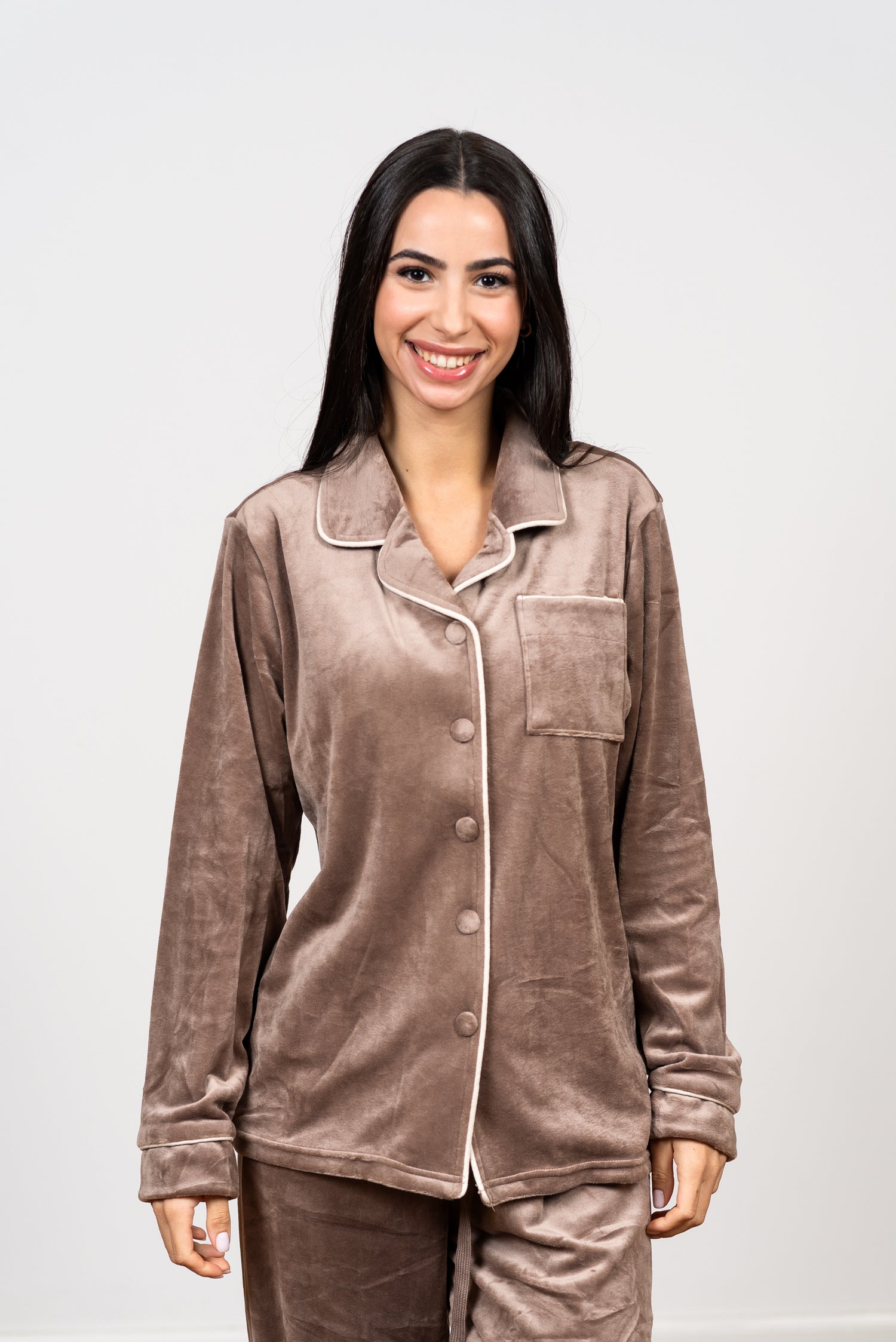פיג'מת קטיפה קלאסית - סט יוקרה מכופתר