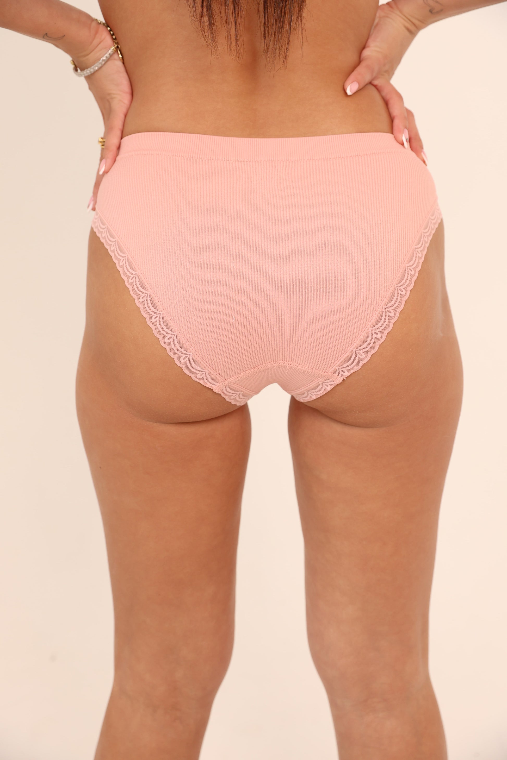 גזרת הביקיני הקלאסית מספקת כיסוי נוח וביטחון, בעוד שגימור התחרה העדינה לאורך המותן ופתחי הרגליים מוסיף מגע אלגנטי ורומנטי. בזכות המבנה הסרוג והנעים, תוכלי ליהנות מנוחות מרבית לאורך כל היום.