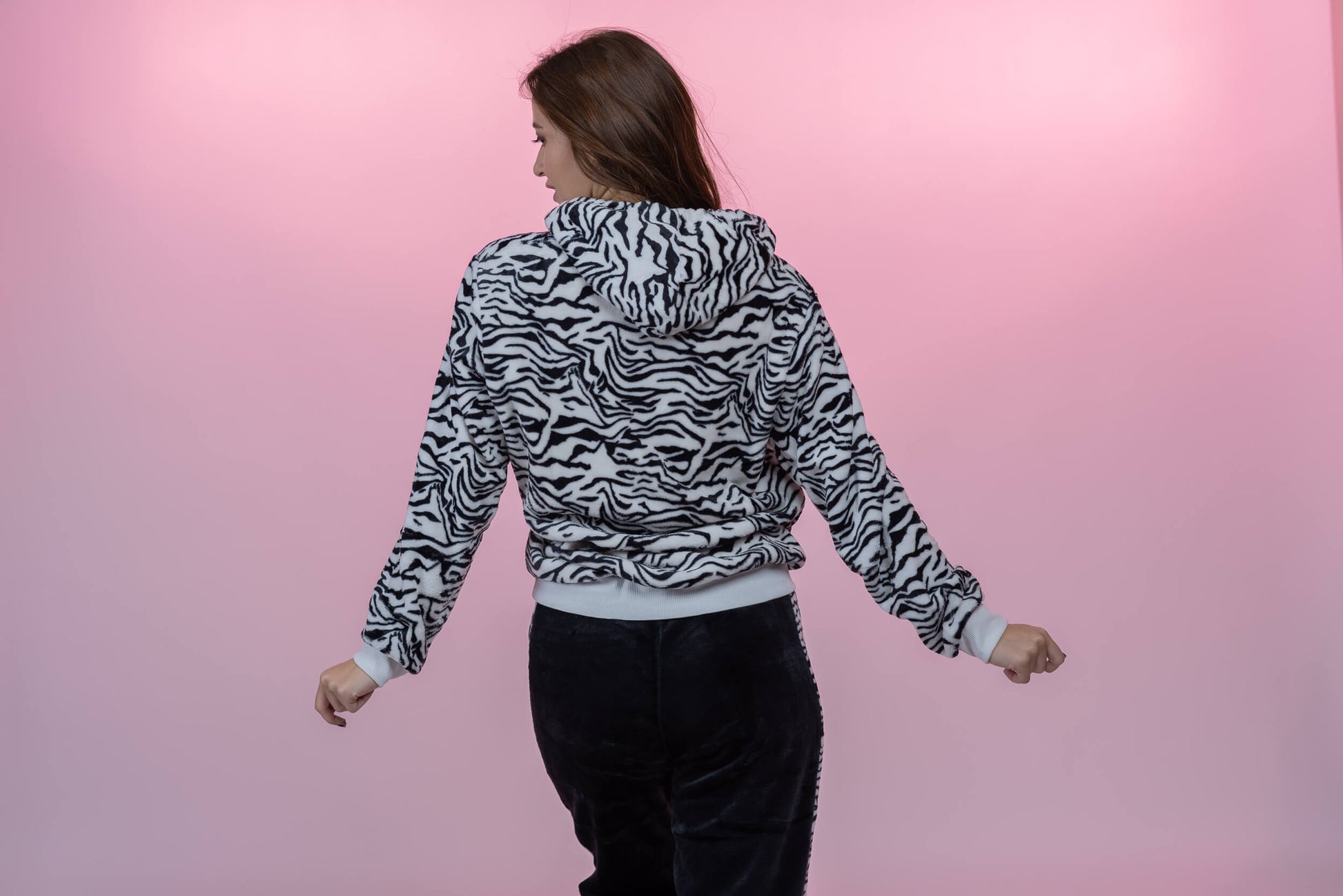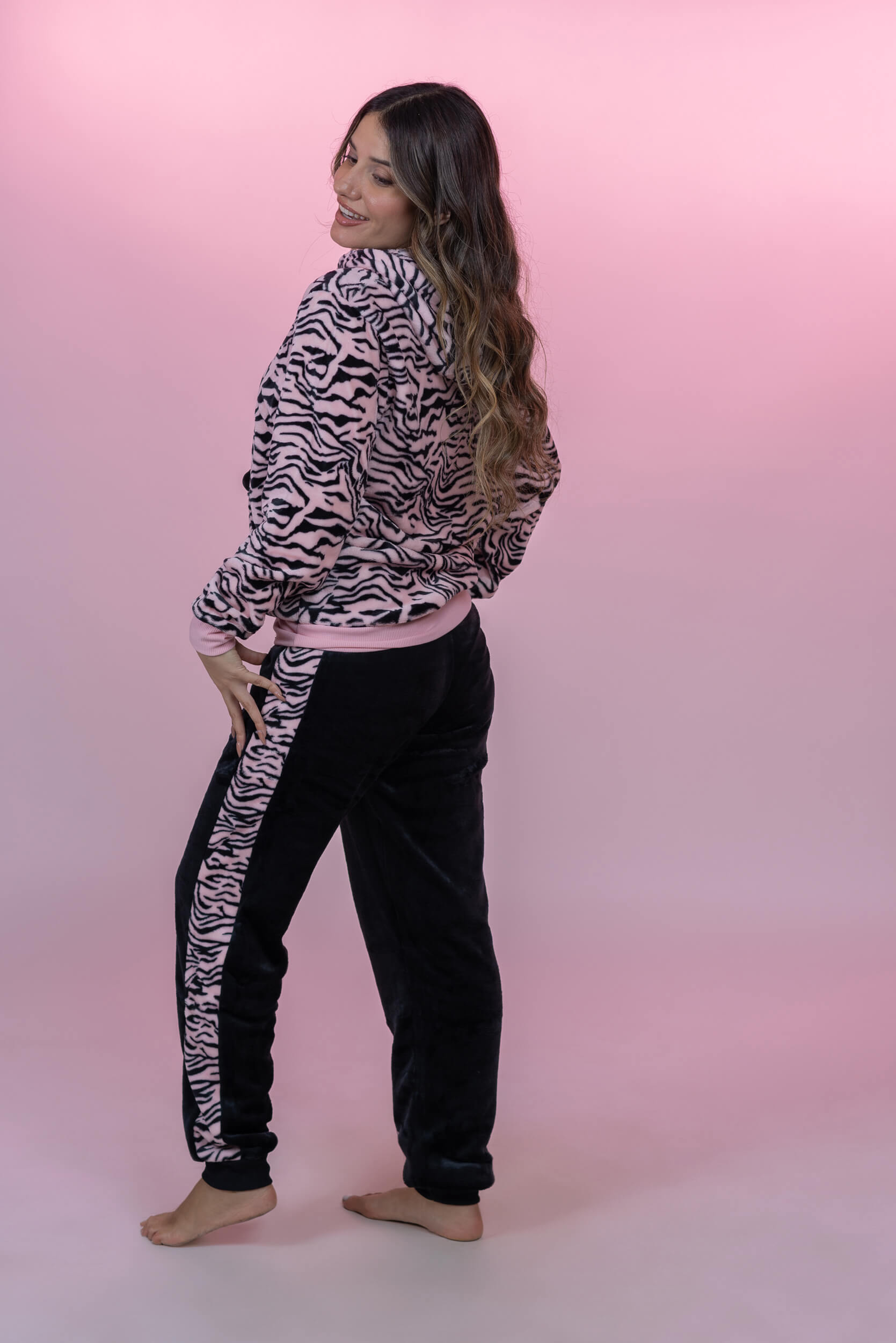 סט פיג'מה פליז קורל זברה