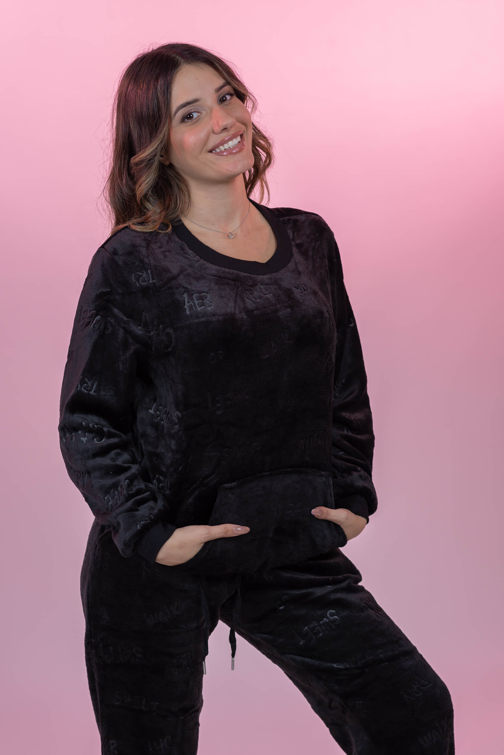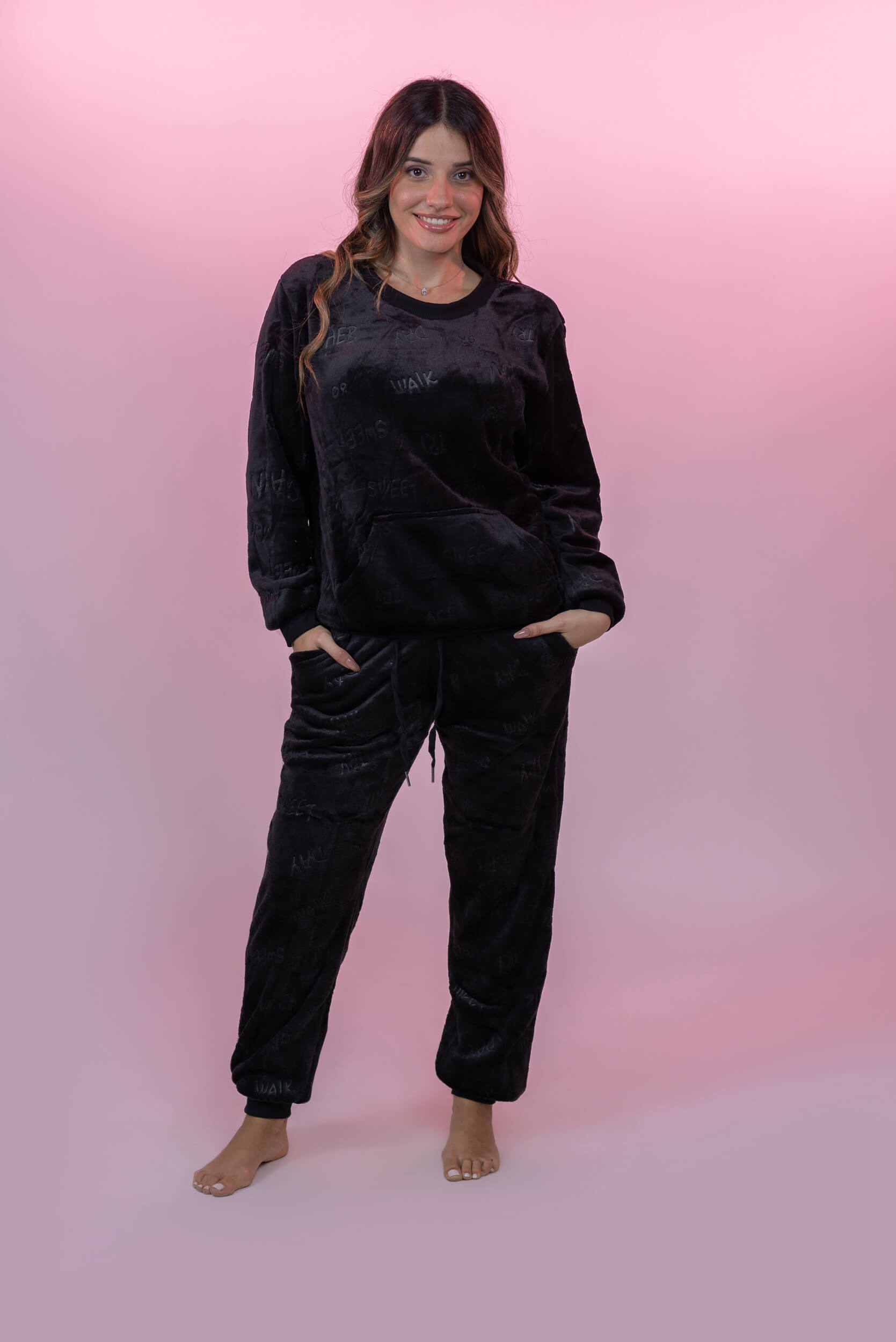 סט פיג'מה פליז קורל עם כיתוב