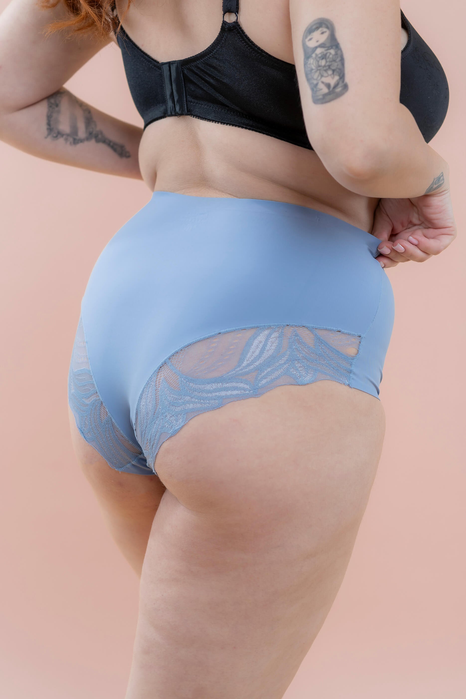 תחתון מגזרת מקסי גבוה עם חתך לייזר בשילוב תחרה